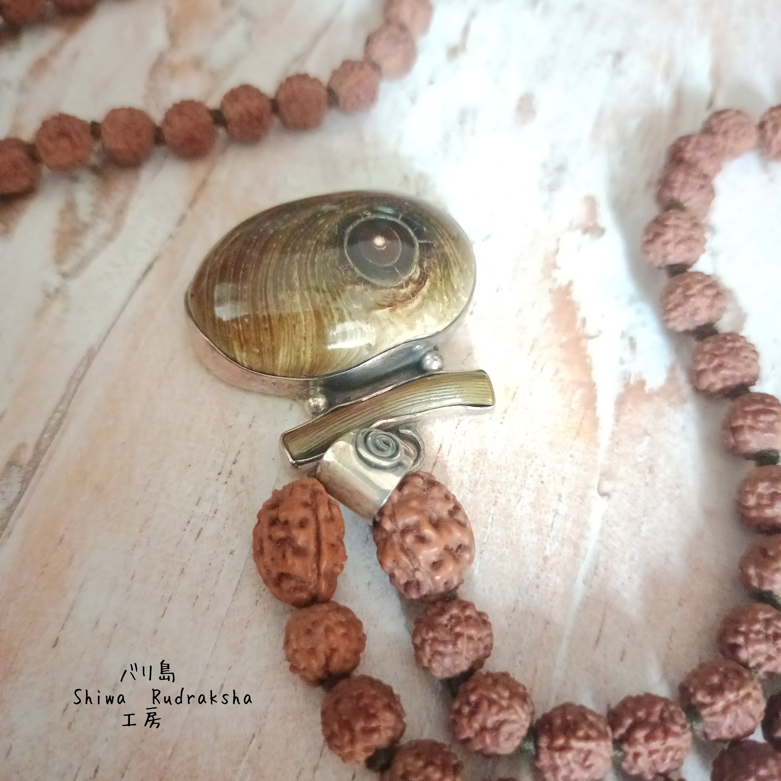ペンダントトップの左右には「ヒンドゥー三大神が内在する」と言われる「ルドラクシャ3面(アグニ)」を組み入れています。