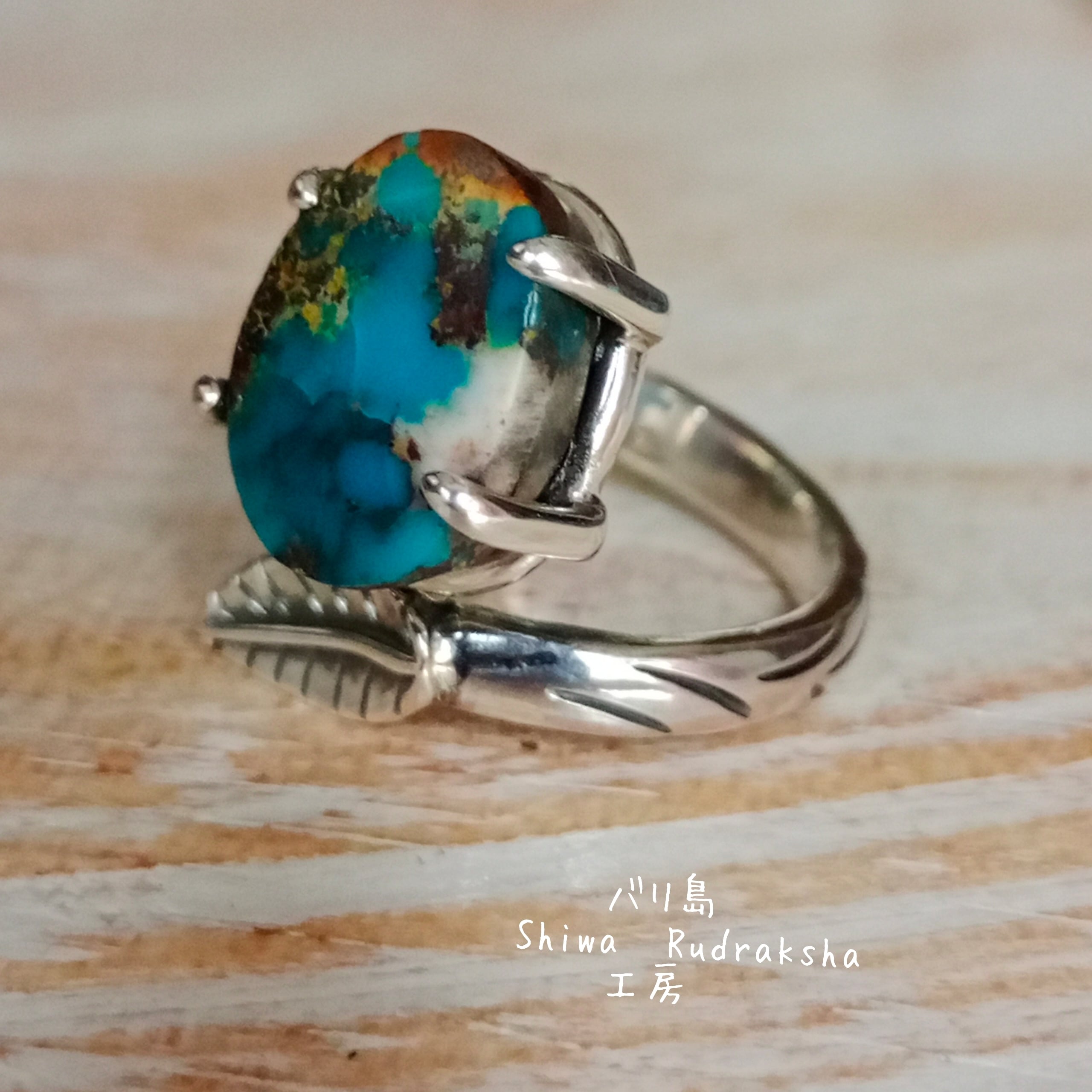 【ペルシャ産ターコイズ】リーフモチーフのリング(約9号~約18号)