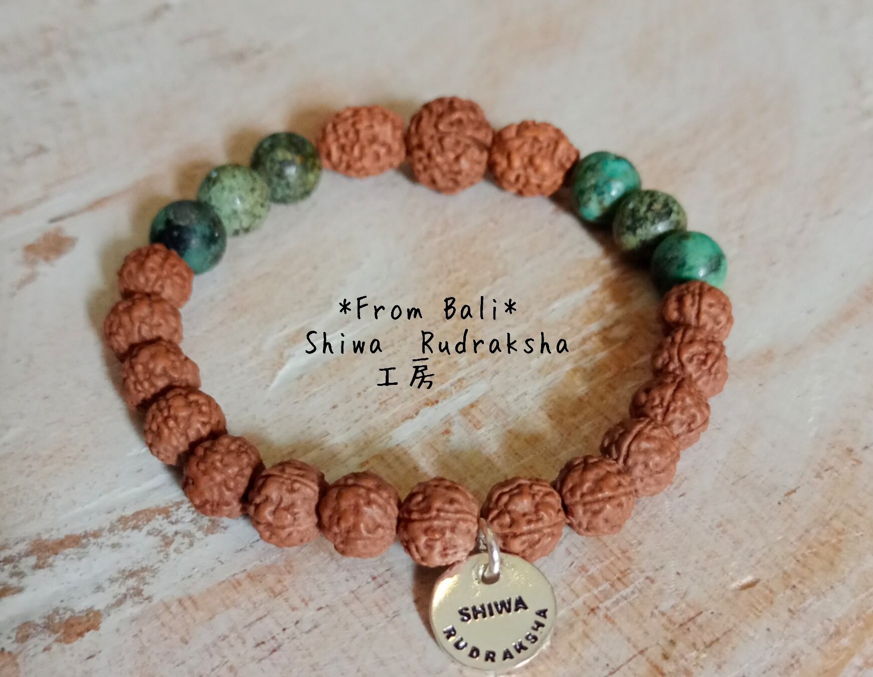 ★ルドラクシャ5面(約8mm)・ルドラクシャ4面(約縦10mm)・ルドラクシャ6面(約11mm)・アフリカンターコイズ(約8mm)