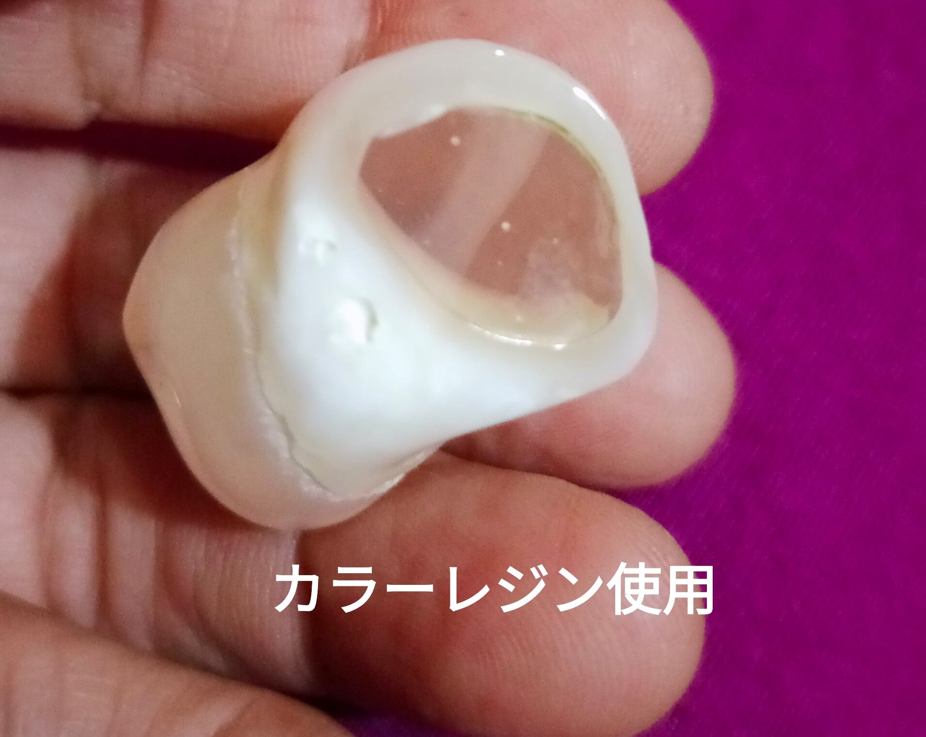 とーっても奇麗なケオンですが、長い年月、波に洗われ空洞が出来て薄くなってたそうで、業者さんがカラーのレジンで強化したそうです。