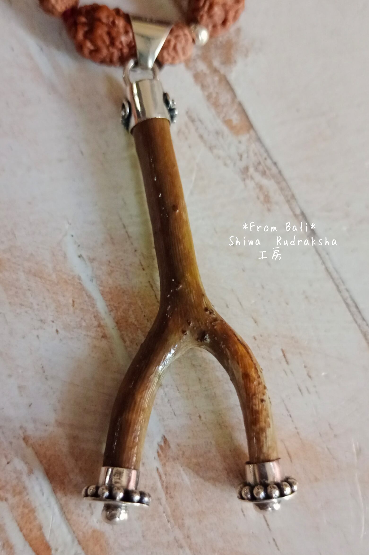 「グリーンウリ・ヌサ・インドネシア産」の幹部分をペンダントトップにした、ルドラクシャネックレスです。