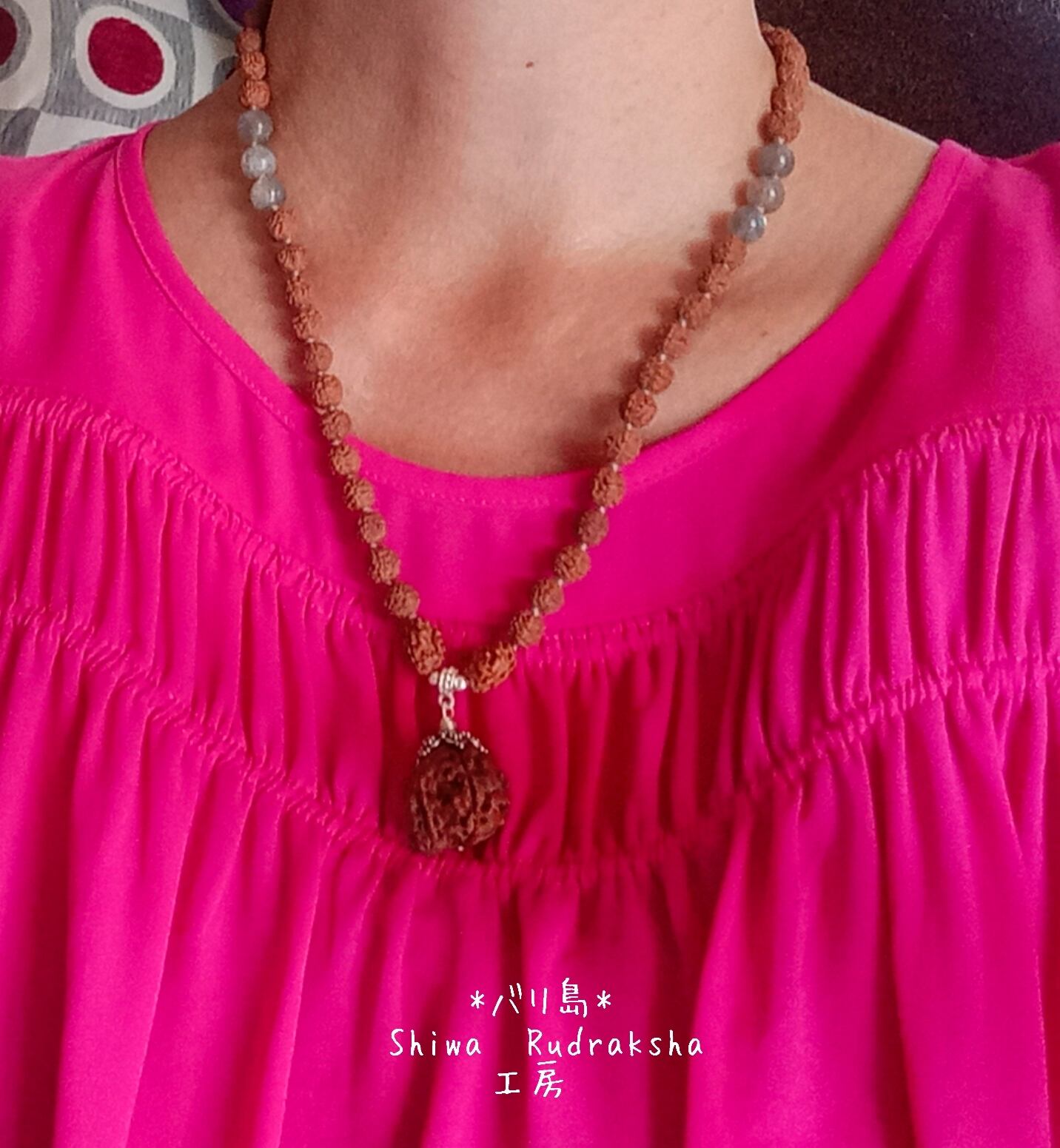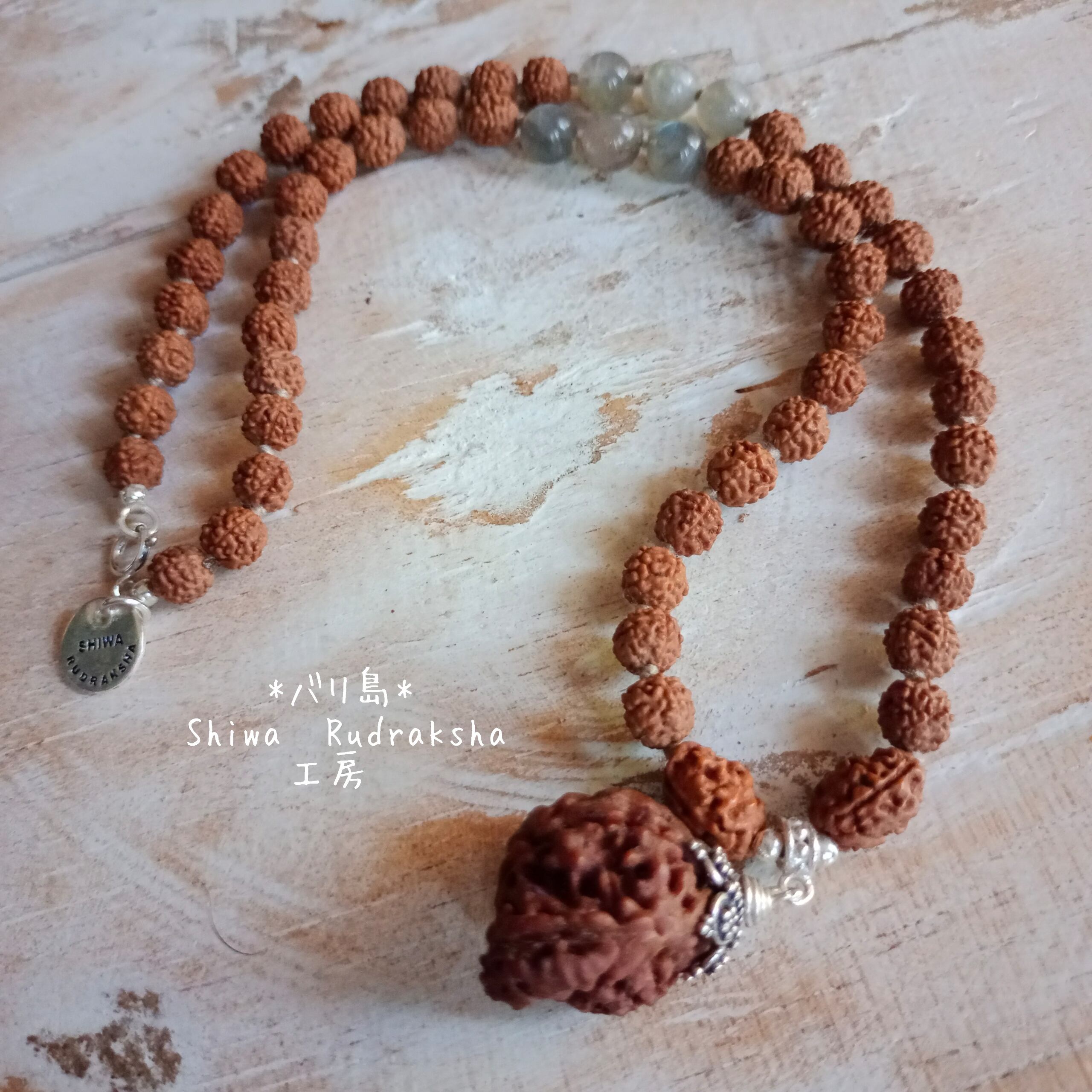 ネックレスには、「ヒンドゥー三大神が内在する」と言われるルドラクシャ「3面アグニ」と、「霊性を高める・目標達成を助ける」と言われる「ラブラドライト」を使用しています。☆彡