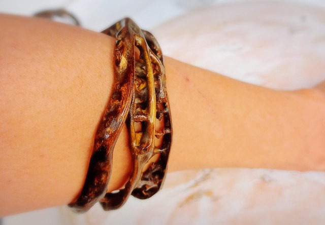 買い付けした「Uli Emas(ゴールドウリ)」と言われる珊瑚の木のバングルです。