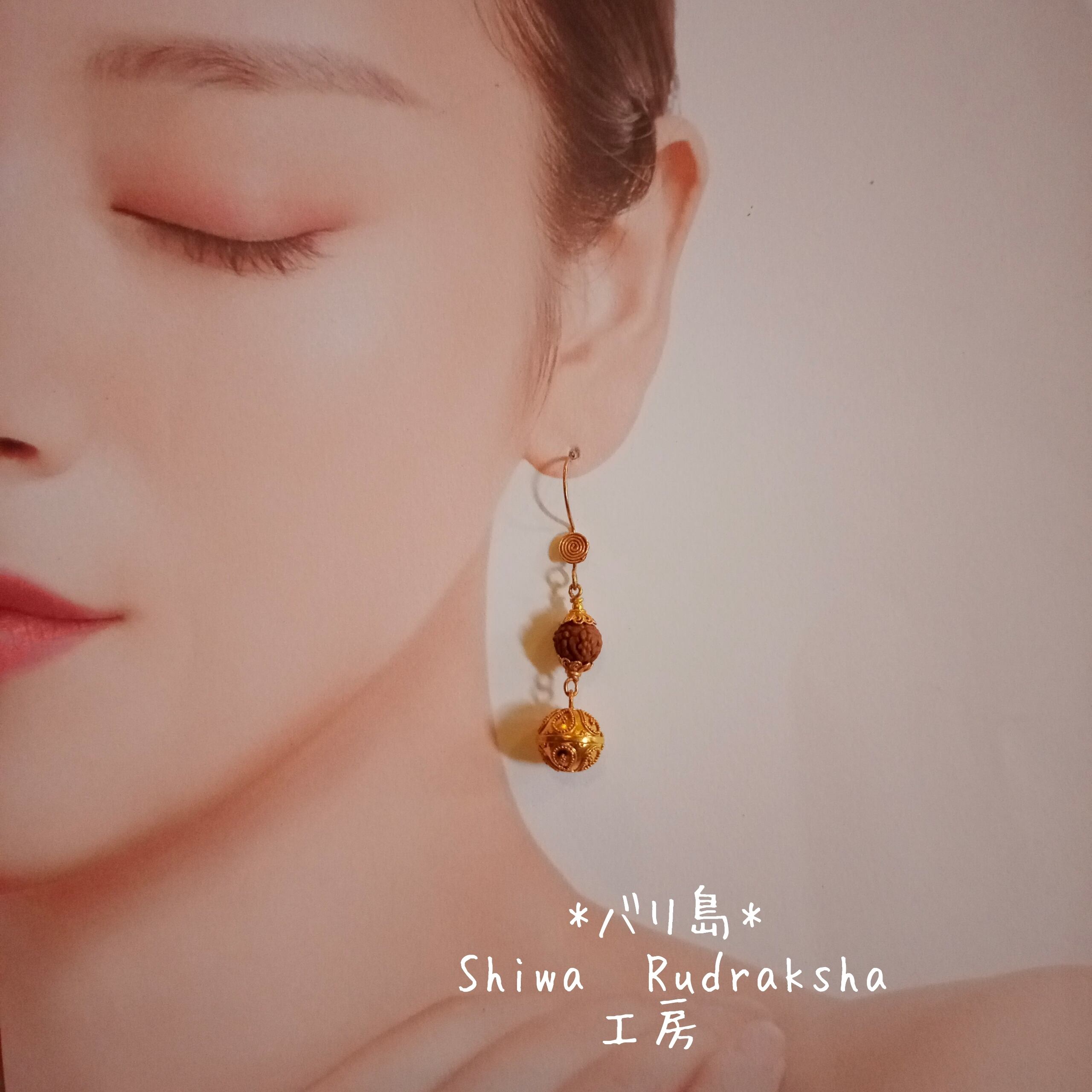 「幸福と繫栄」のルドラクシャ「7面ラクシュミー」を組み入れた「ガムランボール」のピアスです。