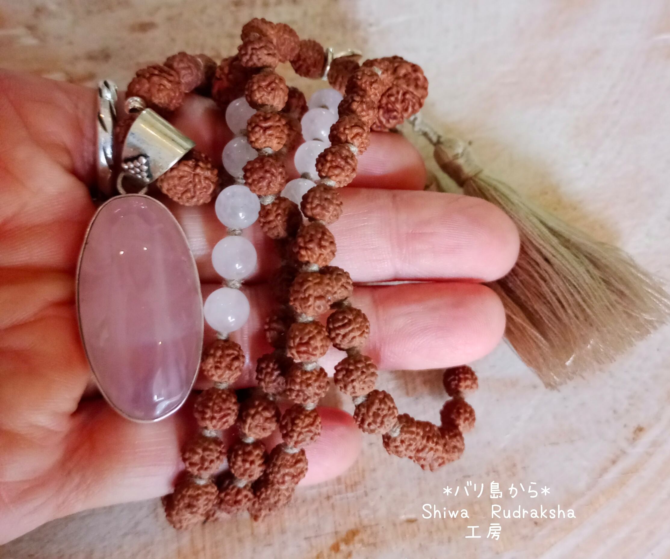 ★ルドラクシャ6,5面(約7mm)・ルドラクシャ7面(約12mm)・ルドラクシャ10面(約16mm)・ローズクウォーツ(約36mm×約19mm:シルバー925)