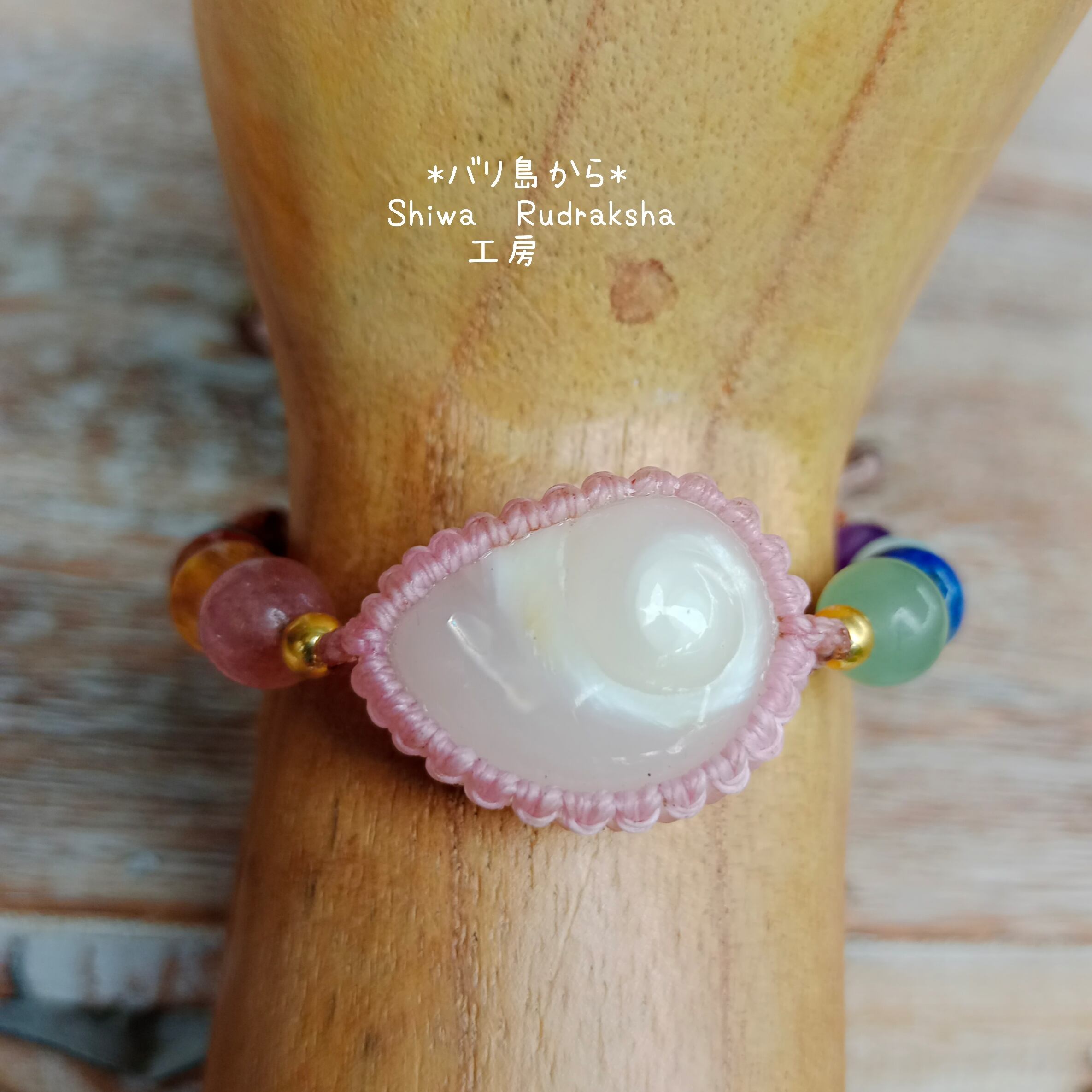 【入魂儀式済ケオン】2面&7面★チャクラカラー★ブレスレット(シェルピンク)