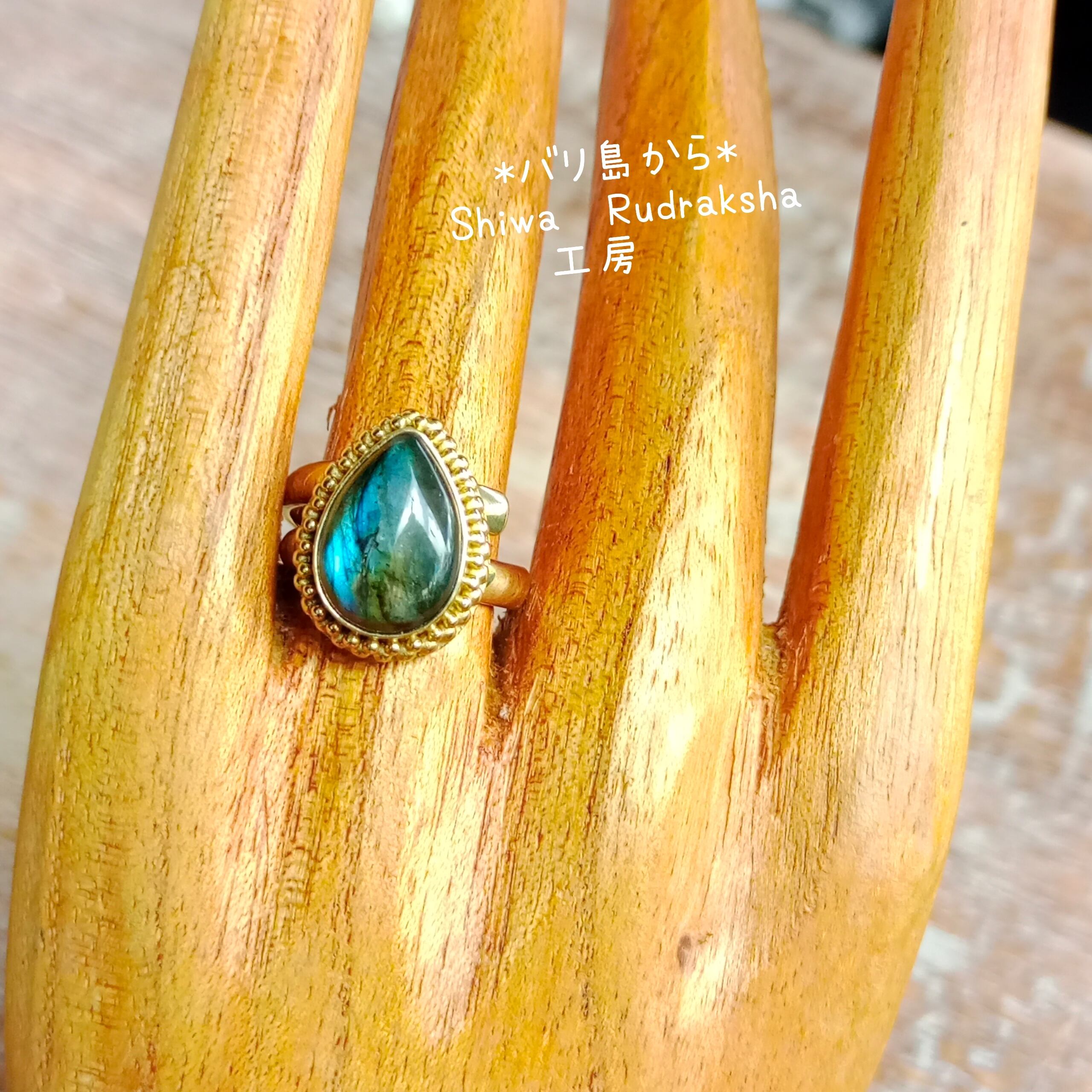 「ラブラドライト」の、24Kゴールドコーテイング925シルバーのリングです。