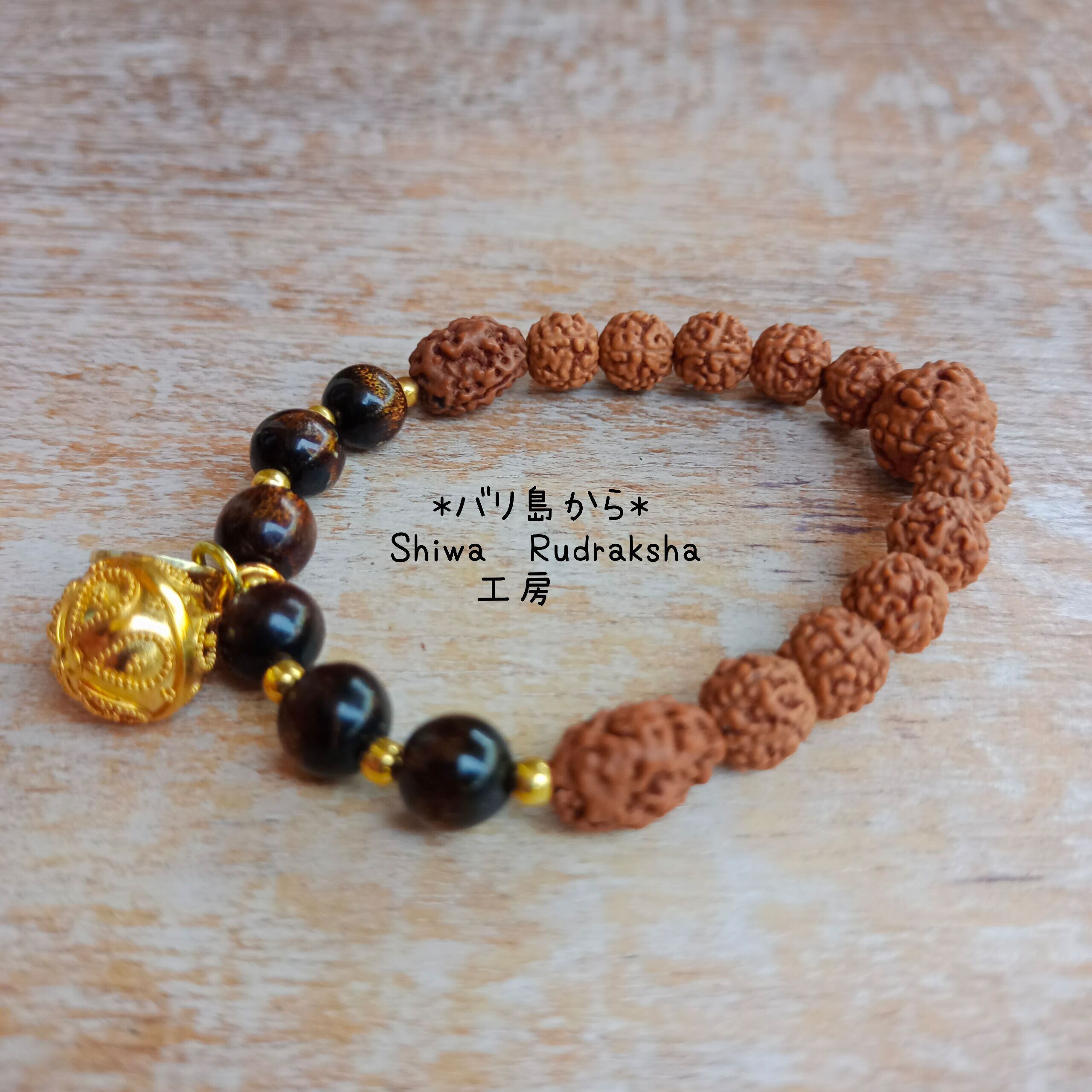 24Kコーテイングしたシルバー925の「ガムランボール」を真ん中にし「ゴールドウリ」のビーズを使用したルドラクシャブレスレットです。