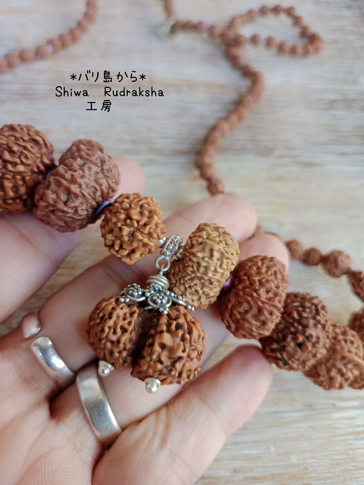 「ルドラクシャ7面&8面」は、レアビーズ「鼻付きガネーシャ」を使用しています。