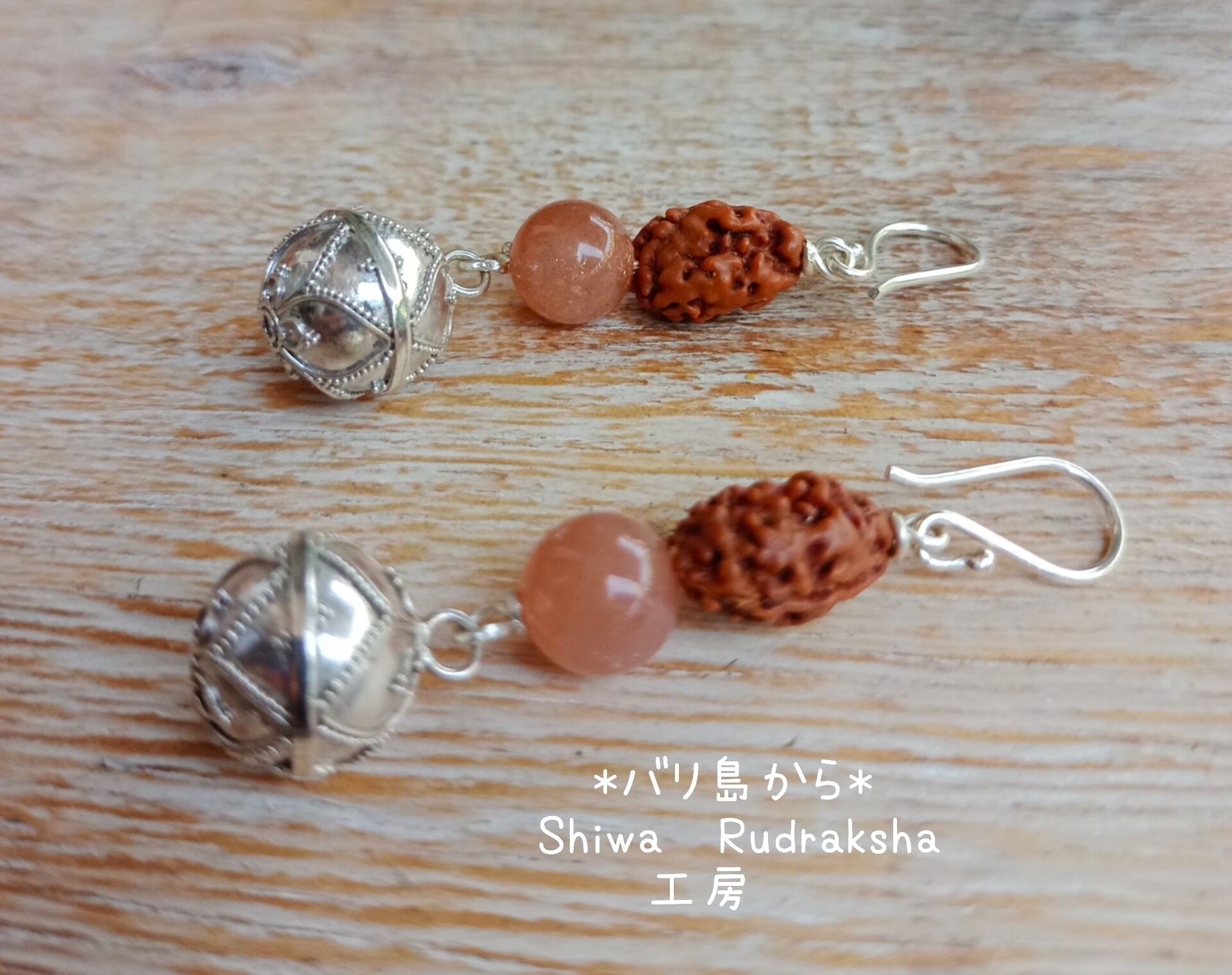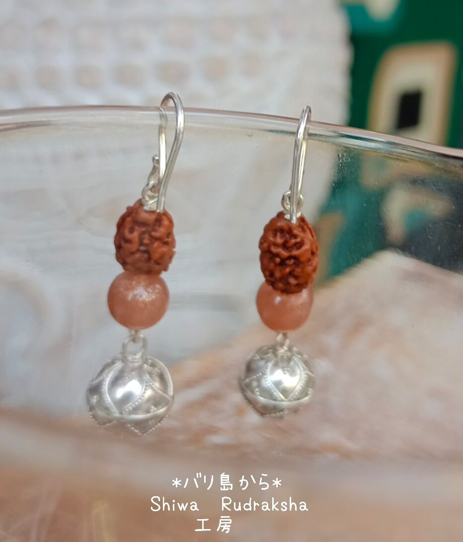 「人間関係の絆を深め、自分自身との調和をはかる。」と言われるルドラクシャ「2面シヴァ&パールヴァティ」を組み入れた「ガムランボール」のピアスです。