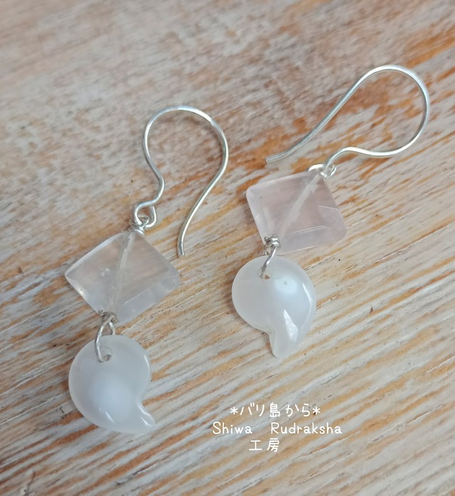 【ケオンの茎】ミニ勾玉&ローズクウォーツ★シルバー925ピアス