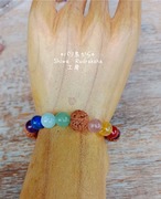 「ルドラクシャ7面(ラクシュミー)」をチャクラストーンで挟んだブレスレットです。