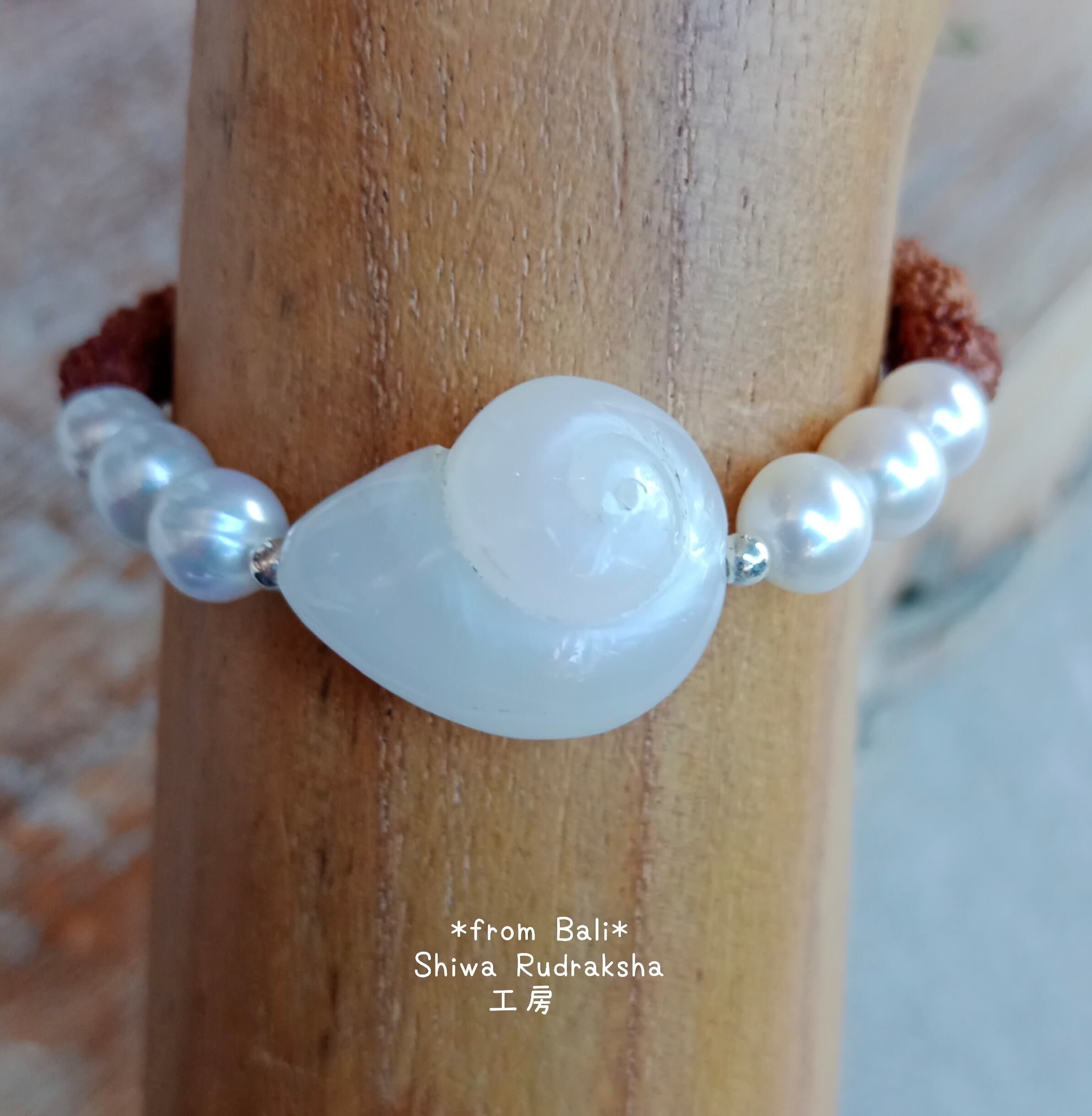 ★ルドラクシャ5面(約6mm)・ルドラクシャ3面(約縦10mm)・淡水パール(約8mm)・ケオン(約24mm×約20mm)