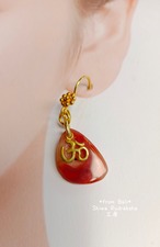 スライスカットした「アゲート」で作った24Kコーテイング925シルバーピアスに、インドの聖音「AUM(オーム)」マークチャームを付けてみました。