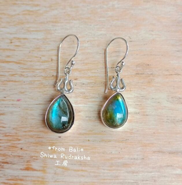 【ラブラドライト】トリシューラ★シルバー925ピアス(A)