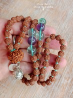 ★ルドラクシャ5面(約8mm)・ルドラクシャ7面(約17mm)・フローライト(約10mm)・ガムランボール(約12mm:シルバー925)