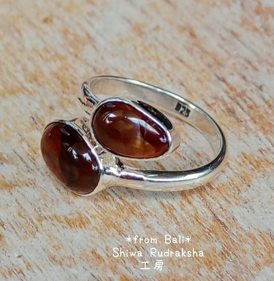 「ファイヤーアゲート」の原石から買い付けて製作したシルバーリングです。